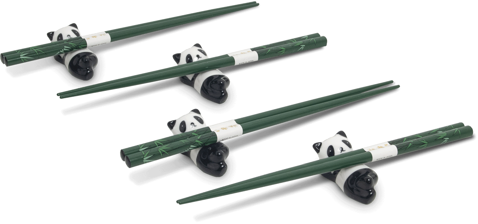 Das Set wird durch vier Stäbchenhalter in Form von niedlichen Pandas ergänzt. Die Halter bestehen aus Keramik und dienen nicht nur als hygienische Ablage, sondern setzen einen charmanten, dekorativen Akzent auf deinem Esstisch.