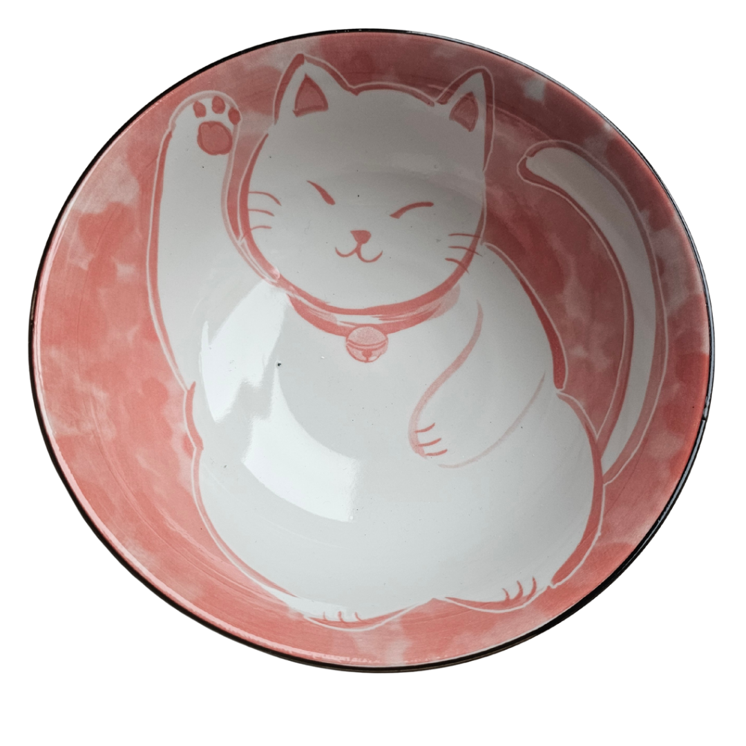 Diese charmante Ramenschale vereint verspieltes japanisches Design mit klarer, moderner Ästhetik. Auf dem hellroten Hintergrund sitzt eine weiße Katze, die der Schale einen freundlichen, warmen Charakter verleiht. Die reine Farbkombination aus Hellrot und Weiß sorgt für ein harmonisches Gesamtbild, das sofort ins Auge fällt und jedes Gericht besonders wirken lässt.